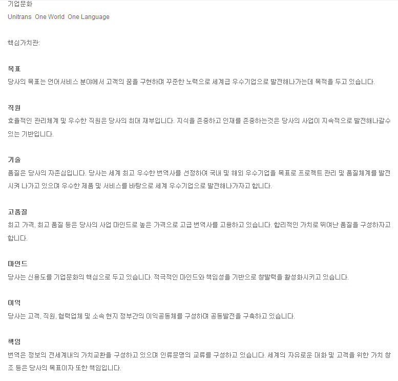 당사의 목표는 언어서비스 분야에서 고객의 꿈을 구현하며 꾸준한 노력으로 세계급 우수기업으로 발전해나가는데 목적을 두고 있습니다.