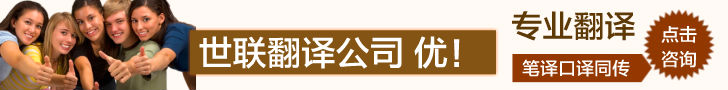 Unitrans世聯翻譯公司在您身邊,離您近的翻譯公司,心貼心的專業服務,專業的全球語言翻譯與信息解決方案供應商,專業翻譯機構品牌。無論在本地,國內還是海外,我們的專業、星級體貼服務,為您的事業加速!世聯翻譯公司在北京、上海、深圳等國際交往城市設有翻譯基地,業務覆蓋全國城市。每天有近百萬字節的信息和貿易通過世聯走向全球!積累了大量政商用戶數據,翻譯人才庫數據,多語種語料庫大數據。世聯品牌和服務品質已得到政務防務和國際組織、跨國公司和大中型企業等近萬用戶的認可。 專業翻譯公司,北京翻譯公司,上海翻譯公司,英文翻譯,日文翻譯,韓語翻譯,翻譯公司排行榜,翻譯公司收費價格表,翻譯公司收費標準,翻譯公司北京,翻譯公司上海。- 上一篇:英語-日語 互譯