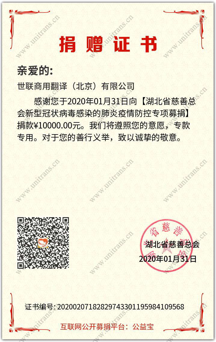 “在與世聯翻譯合作期間,世聯秉承著“上善若水、厚德載物”的文化理念,以上乘的品質和質量,信守對客戶的承諾,出色地完成了我公司交予的翻譯工作。”