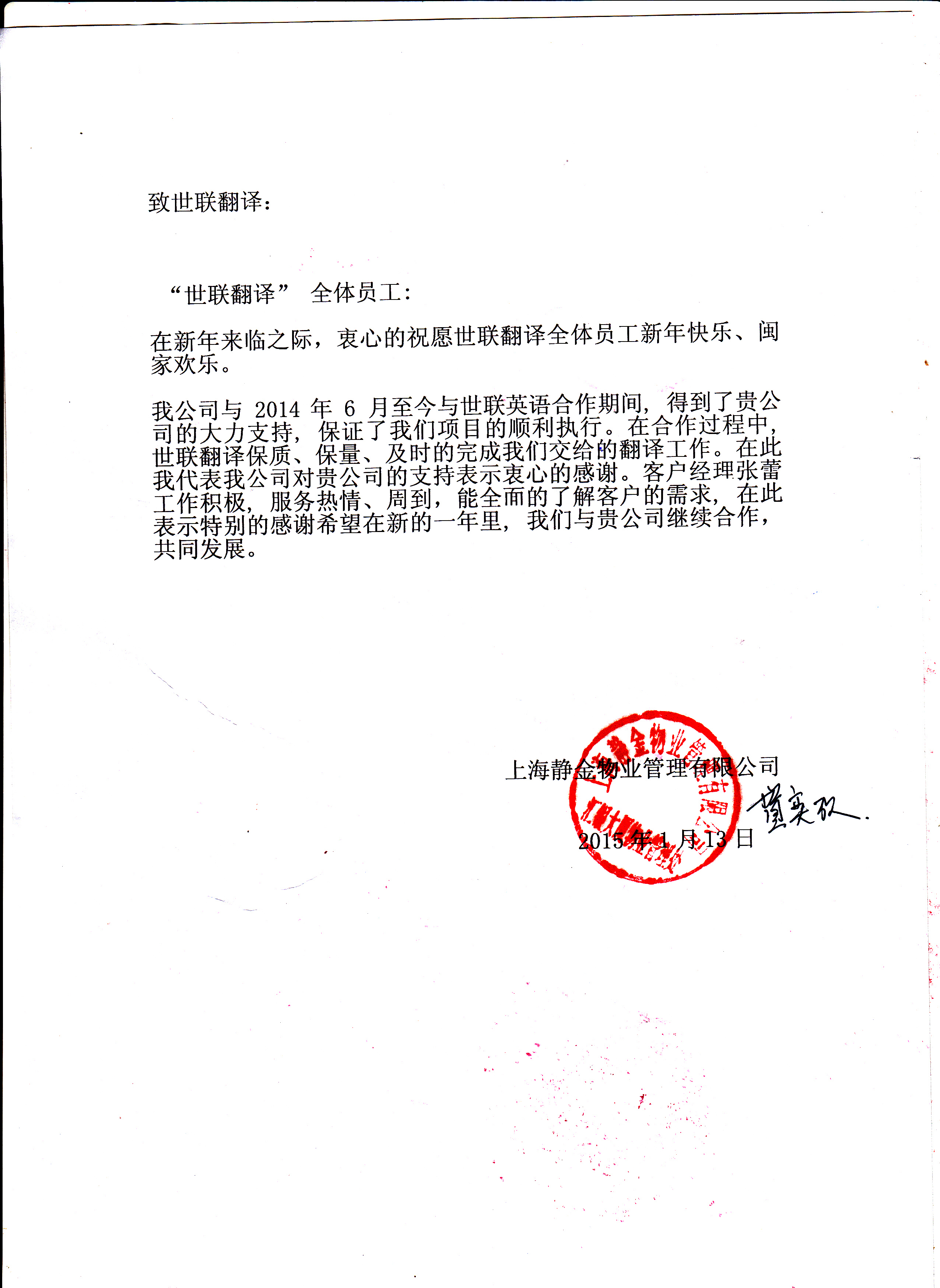 2010中國上海世博會組委會感謝信